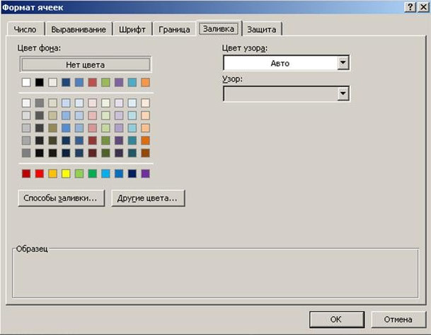 Осередкам таблиці Excel можно надати заливання одним кольором, градієнтне заливання й заливання візерунком. Для їхнього застосування необхідно викликати на осередках контекстне меню й вибрати пункт «Формат осередків», перейти у вкладку «Заливання» і зробити наступне: