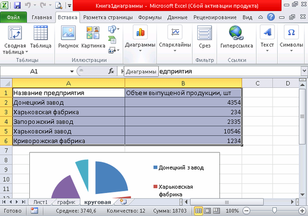 Щоб створити діаграму необхідно виділити вихідні дані й у меню «Вставка» нажати кнопку «Діаграми».