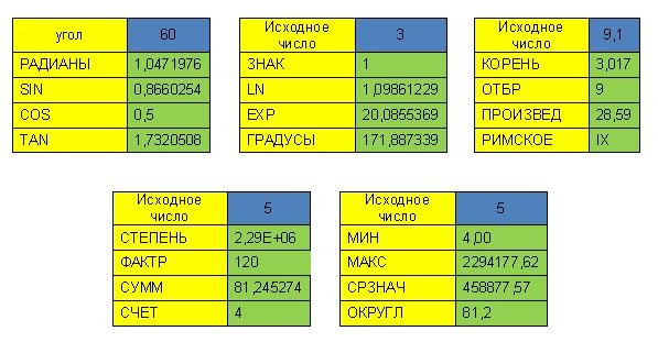 Створити на трьох робочих аркушах приклади таблиць із використанням функцій обробки масивів.